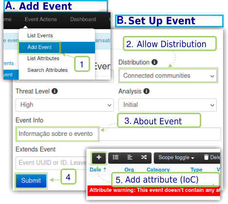 To demonstrate the integration between the MISPs, we will add in the Intelligence Instance an Event, which will be our test incident, as seen in Figure 12.
